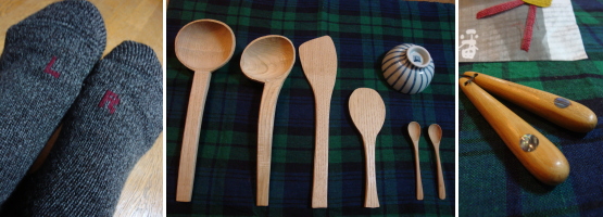| FALKEのソックス 「L」と「R」が可愛いでしょう・・・ さっそくにAzusaに取られたけれど・・・温かくてたまりません・・・(*ノ_<*) そして・・月草さんから大事大事にお連れ帰りした新子さんの杓子と くるみの木さんからお連れ帰りしたお茶碗・・とティースプーン。 Hitomiに買ってもらった「幡」さんでお食事のときに出てた箸置き。 |