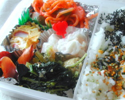水菜と京あげとの煮物 ウィンナー たまごやき(かにかま) えびシュウマイ スパゲティー (たまねぎ&ピーマン) ごはん(のりたま&ごましお) 寝過ごしたぁ・・・・・^^;; お弁当作りは自分との戦いでもありますぅ・・・(ノ_<。) |