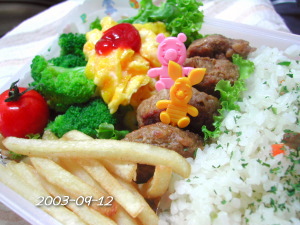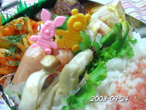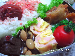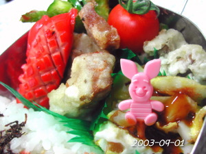 ちくわとたまごのお好みソース焼き しいたけの天ぷら ピーマンのおかか和え 赤いウインナー 豚肉のペッパー風味素揚げ ぷちとまと ごはん(たらこ&昆布) 初日から寝過ごしたぁ(;^_^A アセアセ・・・ よって・・いかに簡単に早く作るか・・ 先が思いやられる二学期の出だしでありまするぅ・・(x_x;) |