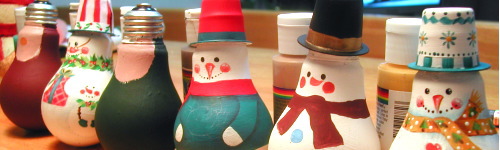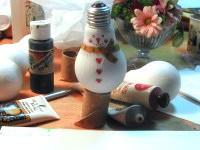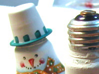 何ができるか・・?わかったかなぁ??? まるくて白いもの・・・ (*^^*)pupupu♪ そうそう・・・ あったりぃ・・♪ 今回はスノーマン・・を作ります♪ 9月ごろ 遊びに行ったmegumiさんちの本で見つけた電球を使ったスノーマン・・ これにしよ〜♪ それが2002年Tammyのクリスマスバージョンになりました・・ 途中・・ちょっとアレンジを加え・・サンタさんも作ってみたりして・・^^ |