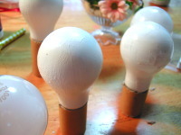 1・ 電球のガラス部分にメデュウムを塗って 絵の具の定着をよくする ホワイトのペイントで地塗り・・ |