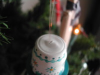 ← 6.帽子の真ん中に小さな穴あけて テグスを通す 中はビーズでとめて 今回のオーナメントは クリスマスツリーにぶら下げるように・・ |