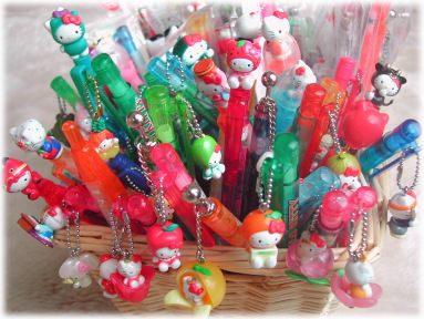 それがいつの間にか 家族や友人達にも飛び火して 多くの人の協力を得て集まってきたkittyのボールペンたち・・。