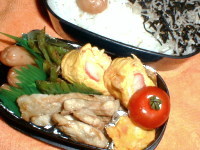 プレーンオムレツ あたりのころっけ 蕗の煮物 焼き豚のたれ焼き ブロッコリーのサラダ プチトマト アンパンマンポテト ごはん(のりたま&梅干し) あたりのコロッケは昨晩の夕飯メニューより取り置きの一品。 このコロッケは「ハズレ」でした・・^^; |