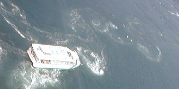 足下に広がる渦の海に観光船・・