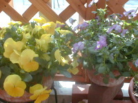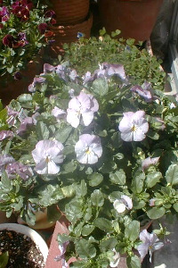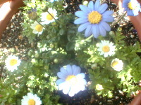 | ↓ 毎年ブルーデージーは花が少なく育てるのが ニガテだったけど今年はつぼみがいっぱい・・ ノースポールも今から育って夏に向う色合の鉢 |