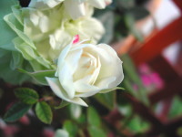 「上」「左斜め上」 ミニ薔薇・・ 白いのはグリーンアイス ちょっとだけ赤い色が入ったりして かわいい花♪ |